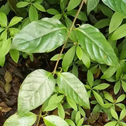 蔓九节是茜草科九节属的攀援或匍匐藤本植物。常以气根攀附树干或岩石;幼枝无毛或有粃糠状柔毛;幼树叶卵形或倒卵形,托叶膜质;圆锥状或伞房状聚伞花序顶生,苞片和小苞片线状披针形,花萼倒圆锥形,花冠白色,冠筒与裂片近等长,裂片长圆形;浆果状核果球形或椭圆形;花期4-6月;果期全年。因叶片紧贴着树干往上生长,宛如一条青龙上树,故又名“上树龙”。蔓九节分布在中国浙江、福建、台湾等省地,在日本、朝鲜、越南等国也有分布,生长在海拔70-1360米的平地、丘陵、山地、山谷水旁的灌丛或林中。喜温暖湿润,不耐寒,耐荫,适宜选用排水良好、富含有机质的砂质土壤。蔓九节在《世界自然保护联盟濒危物种红色名录》中属于无危。繁殖方法一般为扦插、压条、播种繁殖。据《福建药物志》中记载蔓九节“有祛风除湿,舒筋活络的功效。主治风湿关节痛,头风痛,手足麻木坐骨神经痛,腰肌劳损,