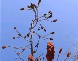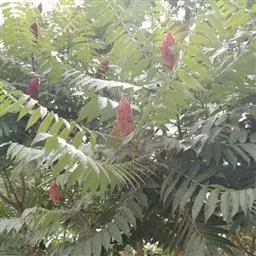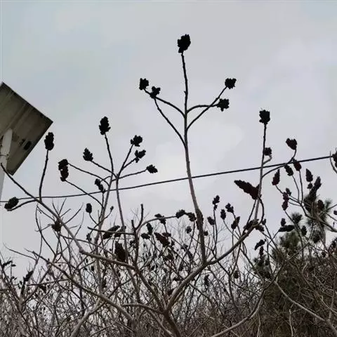 火炬树是漆树科盐麸木属落叶灌木或小乔木;株高,树形不整齐;小枝粗壮,红褐色,密生绒毛;叶轴无翅,…