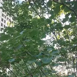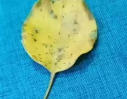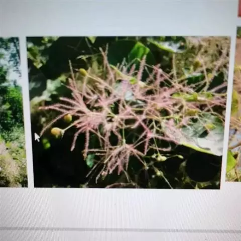 粉背黄栌叶卵圆形,较大,长3.5-10厘米,宽2.5-7.5厘米,无毛,但叶背显著被白粉;叶柄较长,…