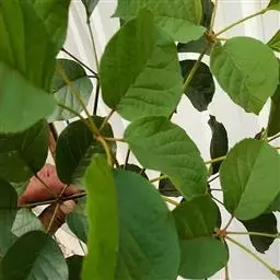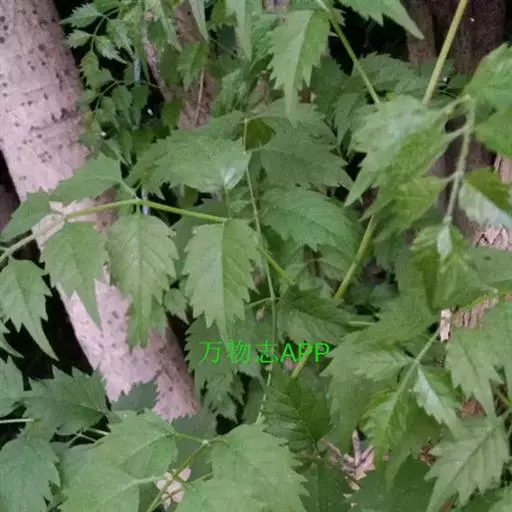 攀援藤本;茎木质,表皮脱落,枯褐色,以气生根攀附于它物之上。叶对生,为奇数羽状复叶;小叶7-9枚,卵形至卵状披针形,顶端尾状渐尖,基部阔楔形,两侧不等大,长3-6(-9)厘米,宽1.5-3(-5)厘米,侧脉6-7对,两面无毛,边缘有粗锯齿;叶轴长4-13厘米;小叶柄长5(-10)毫米。