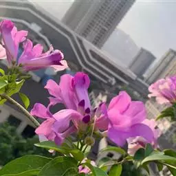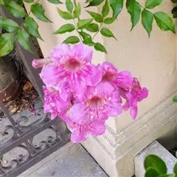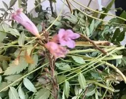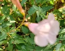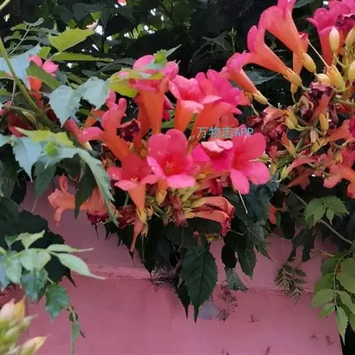粉花凌霄 K.Schum.)是紫葳科魔盒凌霄属的落叶藤本植物。奇数羽状复叶对生,小叶全缘,…