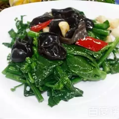西芹炒木耳是一道菜品,主料有西芹、木耳。芹菜是高纤维食物具有抗癌防癌的功效,木耳又有清肺的功效。