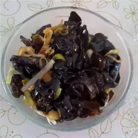香拌木耳,以泡发木耳、蒜瓣为主料的菜品。