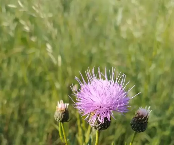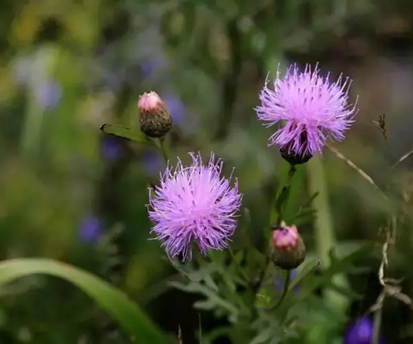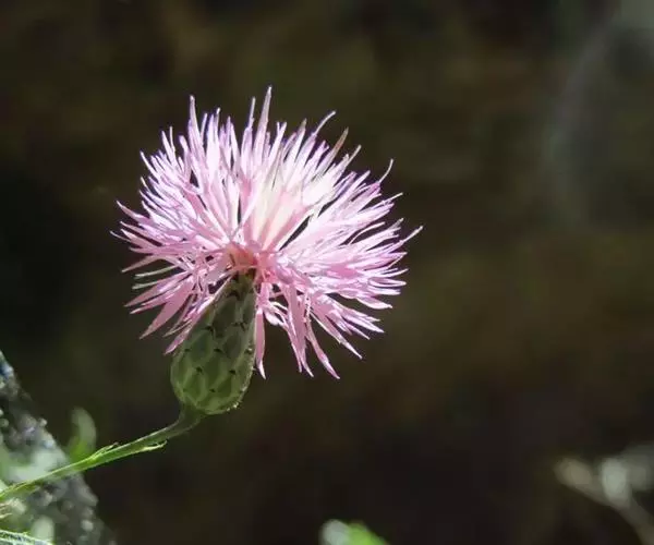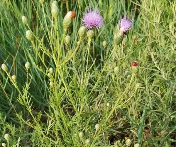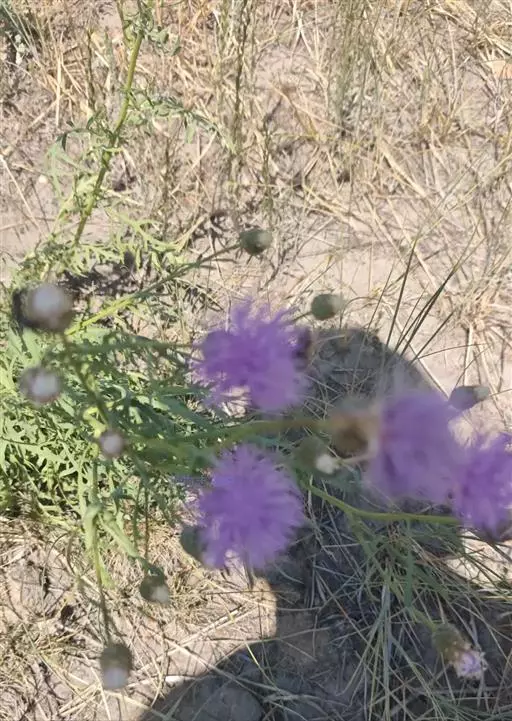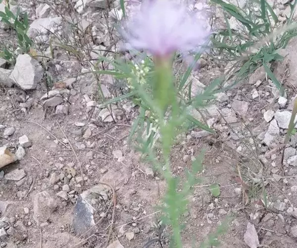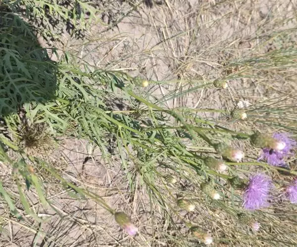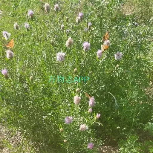 多年生草本,高40-100厘米。根状茎横走,黑褐色。茎直立,上部少分枝或不分枝,中部以下被稀疏的或稠密的节毛,基部被残存的纤维状撕裂的叶柄。基生叶及下部茎叶长椭圆形,长8-12厘米,宽2-5厘米,羽状深裂,有长3-9厘米的叶柄;侧裂片5-8对,全部裂片长椭圆形至宽线形,全缘或有锯齿或少锯齿,宽0.4-0.8(1.3)厘米,顶端急尖;中部茎叶与基生叶及下部茎叶同形,并等样分裂,但无柄或有极短的柄,裂片全缘无锯齿或少锯齿;上部的叶更小,5-7羽状全缘,裂片全缘,无锯齿,或不裂,线形,边缘无锯齿。全部叶两面粗糙,两面被多细胞长或短节毛。头状花序少数,单生茎枝顶端,但不形成明显的伞房花序式排列,或植株含1个头状花序,单生茎端,花序梗或花序枝伸长,几裸露,无叶。总苞卵形或长卵形,直径1.5-2厘米,上部有收缢或稍见收溢。总苞片10-12层,覆瓦状排列,向内层渐长,外层与中层三角形、三角状卵形至卵状披针形,长4.5-8.5毫米,宽3-3.5毫米,顶端急尖,有长2.5毫米的短针刺或刺尖;内层及最内层椭圆形、披针形或长椭圆形至线形,长1-2厘米,宽1-4毫米,最内层最长,上部淡黄白色,硬膜质。全部小花红色,红紫色或白色,花冠长2.1厘米,细管部长9毫米,檐部长1.2厘米,花冠裂片长7毫米。瘦果楔状长椭圆形,褐色,有4条高起的肋棱,长5毫米,宽2毫米。冠毛褐色或略带土红色,长达7毫米。冠毛刚毛糙毛状,分散脱落。花果期6-9月。 [1-2]