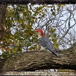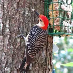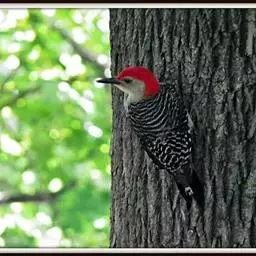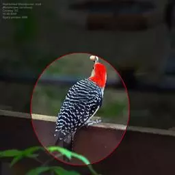红腹啄木鸟成年雄鸟头项有红帽,翅膀和上体是黑白相间的斑纹状羽毛,腹部有一片红羽毛。头亦大,但颈较长,…
