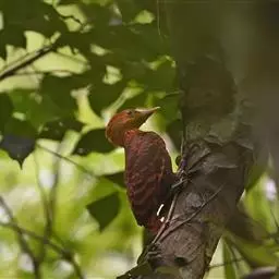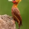 栗啄木鸟:是一种红褐色啄木鸟,体长21厘米。雄性成鸟整个头棕色,…
