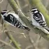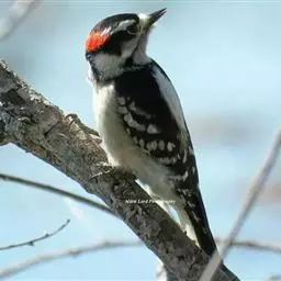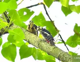 绒啄木鸟,北美洲最小的啄木鸟,白腹黑背和黑项,黑翼上有白色斑点。头部有黑白相间的条纹,尾巴短小,雄…
