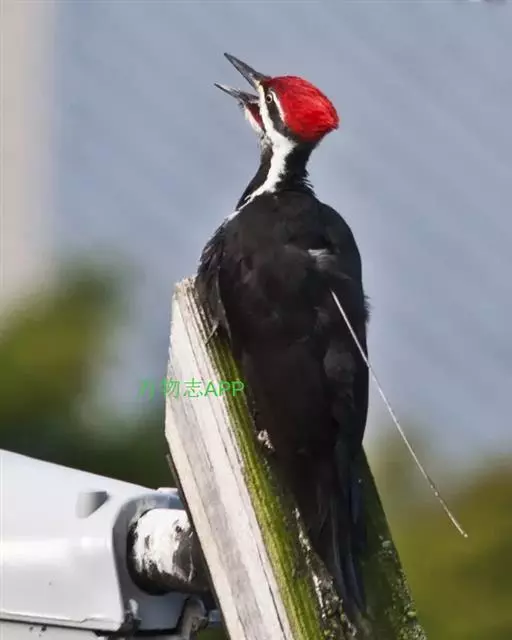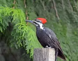 北美黑啄木鸟,Dryocopus pileatus (Linnaeus, 1758),啄木鸟科黑啄木鸟属的一种鸟类。身长约42厘米,体羽黑色,颈部有白色条纹,羽冠鲜红色,时常竖起。分布于北美地区,包括美国、加拿大、格陵兰、百慕大群岛、圣皮埃尔和密克隆群岛及墨西哥境内北美与中美洲之间的过渡地带。