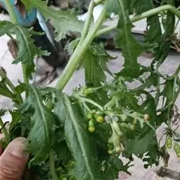 症状:感病植株叶片扭曲萎缩,叶脉坏死。