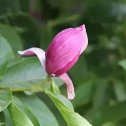 嫩枝绿色,密被长柔毛,后渐脱落,仅节上残留有毛,老枝灰黄色。叶革质,倒披针形或倒卵形,长11-20厘米,宽3-6厘米,先端渐尖或短尾状尖,1/3以下渐狭至基部,楔形,上面深绿色,有光泽,无毛,下面淡绿色,被淡褐色短毛;中脉被白色长毛,侧脉每边13-16条,网脉稀疏,干时两面均凸起;叶柄长15-25毫米,被白色长毛,托叶痕长4-6 毫米。花大,单生枝端,有芳香。花蕾卵圆形,距花被下3-6毫米处具1苞片脱落痕;花被片9,紫红色外轮3片倒卵形,长5.5-6.5厘米,宽3厘米,浅绿而常紫色,被稀疏长柔毛,中内两轮紫红色,长4-5.5厘米,宽2.5-3厘米,内轮的较小;雄蕊长12-20毫米,花药长约10毫米,内向,药隔伸出成1毫米的三角短尖头;花丝深红色,长1毫米;雌蕊群卵状椭圆体形,长2-2.5厘米,心皮狭椭圆体形,长8-10毫米,浅绿色,密被褐色短绒毛;花柱淡红色,长约3毫米。聚合果卵球形,黄褐色,蓇葖缘状,革质,长8-10厘米。花期4-5月,果期8-9月。香花类,夏季观花。 [1-2]