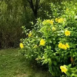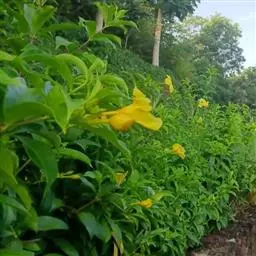 黄蝉植株浓密,叶色碧绿,花朵明快灿烂,非常醒目,适宜作大中型盆栽,装饰客厅、阳台、公园及商场、会场等大型室内空间,效果很好。