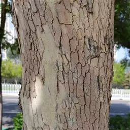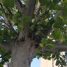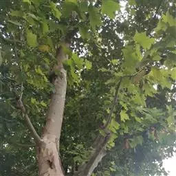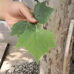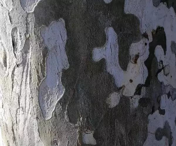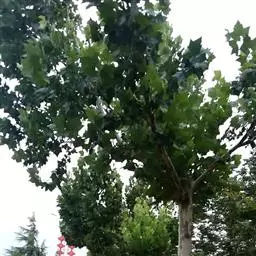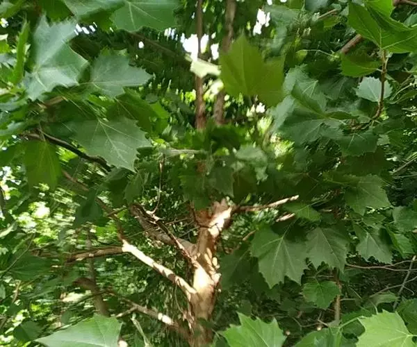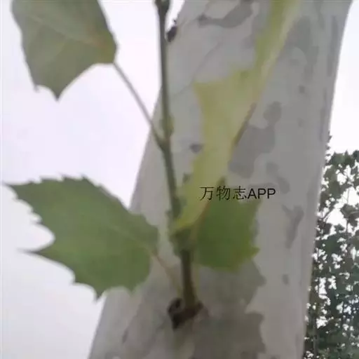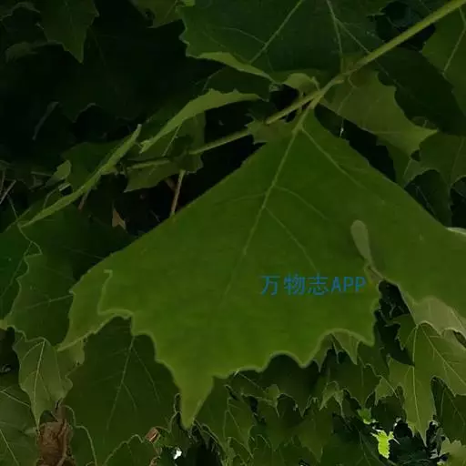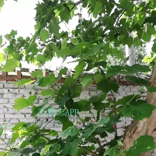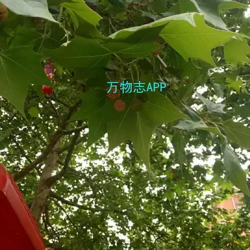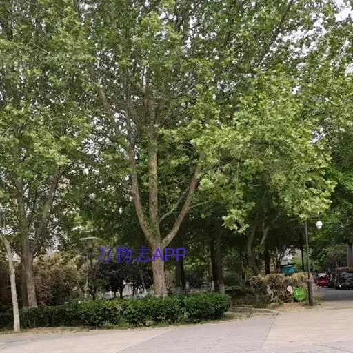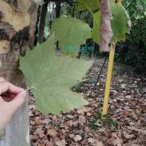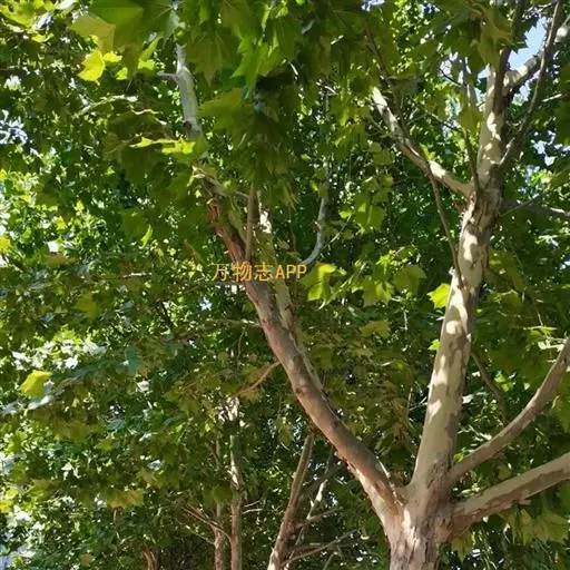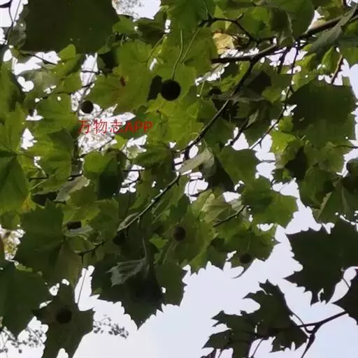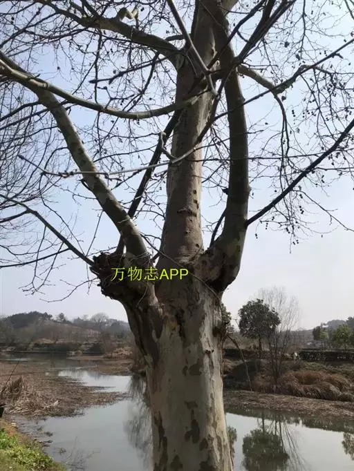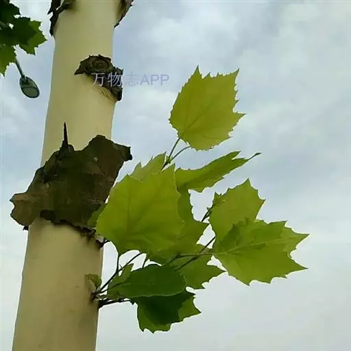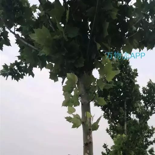 落叶大乔木,高可达35米。枝条开展,树冠广阔,呈长椭圆形。树皮灰绿或灰白色,不规则片状剥落,剥落后呈粉绿色,光滑。柄下芽。单叶互生,叶大,叶片三角状,长9~15厘米,宽9~17厘米,3~5掌状分裂,边缘有不规则尖齿和波状齿,基部截形或近心脏形,嫩时有星状毛,后近于无毛。花期4~5月,头状花序球形,球形花序直径2.5~3.5厘米;花长约4毫米;萼片4;花瓣4;雄花(4~8个雄蕊);雌花(有6个分离心皮)。球果下垂,通常2球一串。9~10月果熟,坚果基部有长毛。