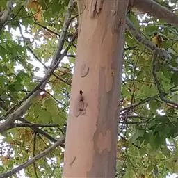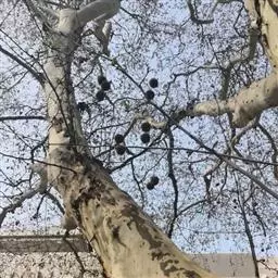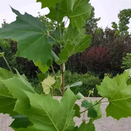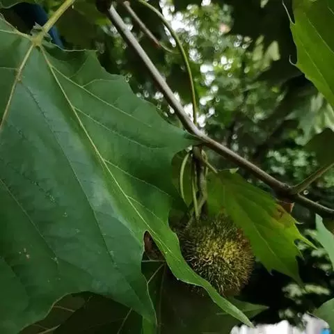 二球悬铃木的亲本三球悬铃木,又叫裂叶悬铃木、鸠摩罗什树。公元401年,印度高僧鸠摩罗什到中国传播佛教,携带这种树,种植于西安附近的户县古庙前,尚存树干得有4人才能合抱。这是我国最早引种的悬铃木了。可惜,这种三球悬铃木在西安也没推广,西安的行道树是从上海引种的二球悬铃木。