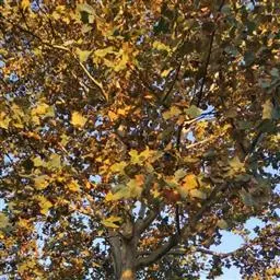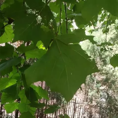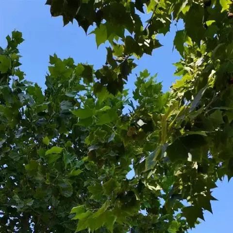 而悬铃木则树干粗大(也不是很粗,比梧桐粗),叶片亦呈三角星状,只是大得多。果实非常小,不能吃。叶子在秋天变成褐黄色,肯定没有梧桐的叶子好看。树冠很大,且因叶子很大,几乎完全遮住了树冠上面的阳光,所以最是适合做人行道遮荫树。