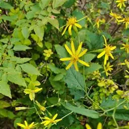 千里光(学名:Senecio scandens Buch.-Ham. ex D. Don)是菊科,千里光属多年生攀援草本植物,根状茎木质,粗,多分枝,老时变木质,皮淡色。叶片卵状披针形至长三角形,顶端渐尖,基部宽楔形,截形,戟形或稀心形,羽状脉,叶脉明显;头状花序有舌状花,多数,花序梗长,具苞片,小苞片线状钻形。舌状花舌片黄色,长圆形,管状花多数;花冠黄色,裂片卵状长圆形,尖,花药颈部伸长,瘦果圆柱形,冠毛白色。
