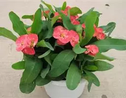 虎刺梅的花开在新枝的顶端,要想让虎刺梅多开花,就必须进行适当的修剪。因为主枝太长,开花就少。所以应在花期之后将过长的和生长不整齐的枝剪短,一般在枝条的剪口下长出2个新枝,当新枝长到5~6厘米时就能开花。每年修剪1次,几年后,整个植株就会开满鲜艳的小红花。由于枝条细长较软,随植株长大,可用竹棍或铁丝扎成不同形状的支架,将枝条牵引捆缚其上,使之成为花柱状,开花时更能显现出红花绿叶的美丽。若不及时修剪,任其自然生长,其主枝就会越长越长,不仅开花少,而且株形也不美观。