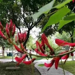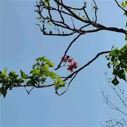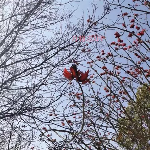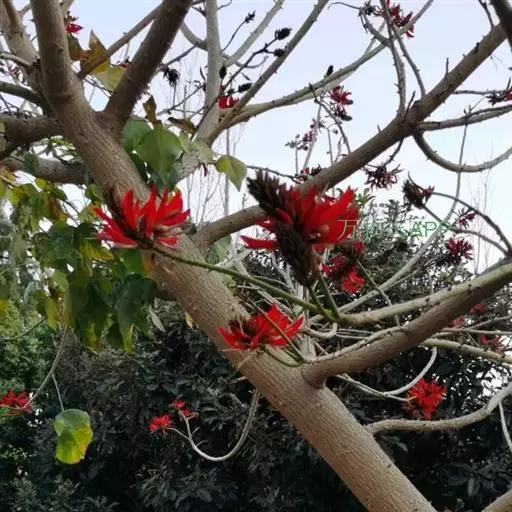 在中国某些地方的旧俗里,人们曾以刺桐开花的的情况来预测年成:如头年花期偏晚,且花势繁盛,那么就认为来年一定会五谷丰登,六畜兴旺,否则相反;还有一种说法是刺桐每年先萌芽后开花,则其年丰,否则反之。所以刺桐又名“瑞桐”。代表着吉祥如意。因为这一点,在宋代还引出一场小小的争论呢!争论的一方是作为廉访使到泉州的丁渭,他很希望能先看到刺桐的青叶,使泉州年谷丰熟,于是曾写下这么一首诗:“闻得乡人说刺桐,叶先花发卜年丰。我今到此忧民切,只爱青青不爱红。”争论的另一方是到泉州来当郡守的王十朋,他与丁渭抱有相同的愿望,但他不相信先后花或先花后芽那一套谶语。为此也写下了一首诗:“初见枝头万绿浓,忽惊火伞欲烧空。花先花后年俱熟,莫道时人不爱红。”虽有争论,但流传人间的却是一段佳话。真是可爱的公仆可爱的花。 刺桐(图9)