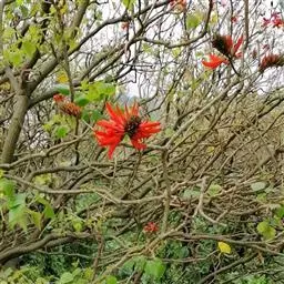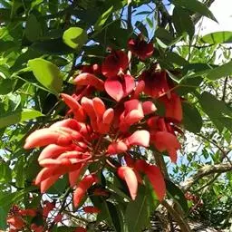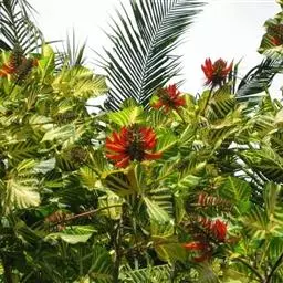 树叶、树皮和树根可入药,有解热和利尿的功效。 刺桐(图5)