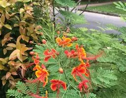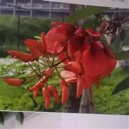刺桐(图6) 盆栽管理较为粗放,但出房前应隔年翻盆一次,盆土宜用塘泥2份、堆肥和荟糠灰各1份混合使用。植株需要进行重剪,对直径l厘米以下的一年生枝仅留1-2个芽,直径1厘米以上的可留2-3个芽。重截后,会刺激隐芽和腋芽抽出强壮的新梢,长大后可使满树着花繁茂。