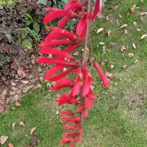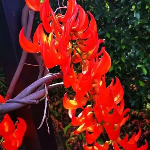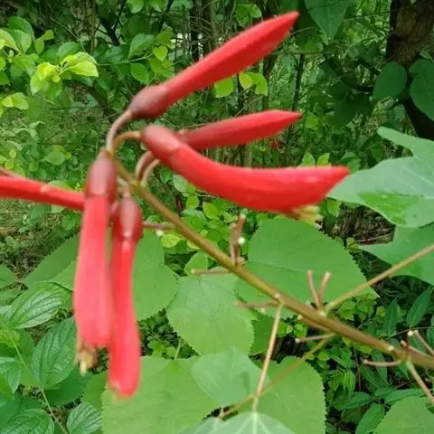 总状花序顶生,长10-16厘米,上有密集、成对着生的花;总花梗木质,粗壮,长7-10厘米,花梗长约1厘米,具短绒毛;花萼佛焰苞状,长2-3厘米,口部偏斜,一边开裂;花冠红色,长6-7毫米,旗瓣椭圆形,长5-6厘米,宽约2.5厘米,先端圆,瓣柄短;翼瓣与龙骨瓣近等长;龙骨瓣2片离生,雄蕊10,单体;子房被微柔毛;花柱无毛。