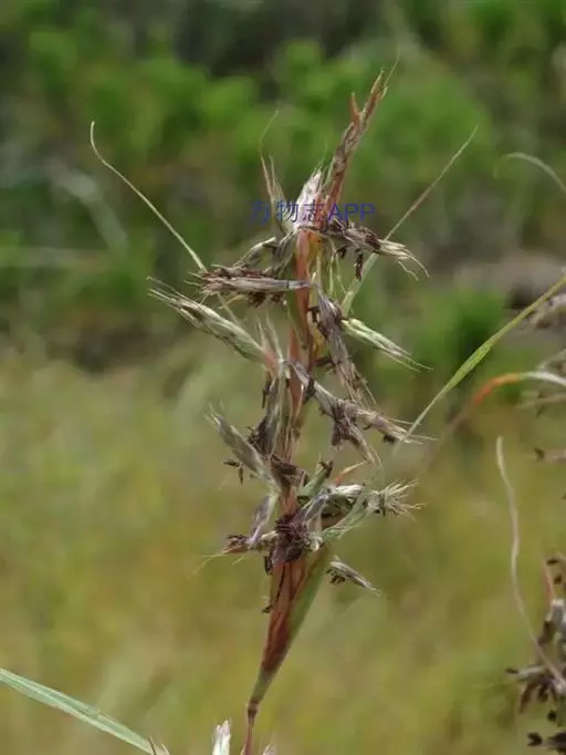 多年生。秆直立丛生,高60-100厘米,具3-5节,节下被白粉或微毛。叶鞘无毛, 橘草 下部者聚集秆基,质地较厚,内面棕红色,老后向外反卷,上部者均短于其节间;叶舌长0.5-3毫米,两侧有三角形耳状物并下延为叶鞘边缘的膜质部分,叶颈常被微毛;叶片线形,扁平,长15-40厘米,宽3-5毫米,顶端长渐尖成丝状,边缘微粗糙,除基部下面被微毛外通常无毛。伪圆锥花序长15-30厘米,狭窄,有间隔,具1-2回分枝;佛焰苞长1.5-2厘米,宽约2毫米(一侧),带紫色;总梗长5-10毫米,上部生微毛;总状花序长1.5-2厘米,向后反折;总状花序轴节间与小穗柄长2-3.5毫米,先端杯形,边缘被长1-2毫米的柔毛,毛向上渐长。无柄小穗长圆状披针形,长约5.5毫米,中部宽约1.5毫米,基盘具长约0.5毫米的短毛或近无毛;第一颖背部扁平,下部稍窄,略凹陷,上部具宽翼,翼缘密生锯齿状微粗糙,脊间常具2-4脉或有时不明显;第二外稃长约3毫米,芒从先端2裂齿间伸出,长约12毫米,中部膝曲;雄蕊3,花药长约2毫米;柱头帚刷状,棕褐色,从小穗中部两侧伸出。有柄小穗长4-5.5毫米,花序上部的较短,披针形,第一颖背部较圆,具7-9脉,上部侧脉与翼缘微粗糙,边缘具纤毛。染色体数2n=20(Moriya A.,Kondo,1950)。花果期7-10月。