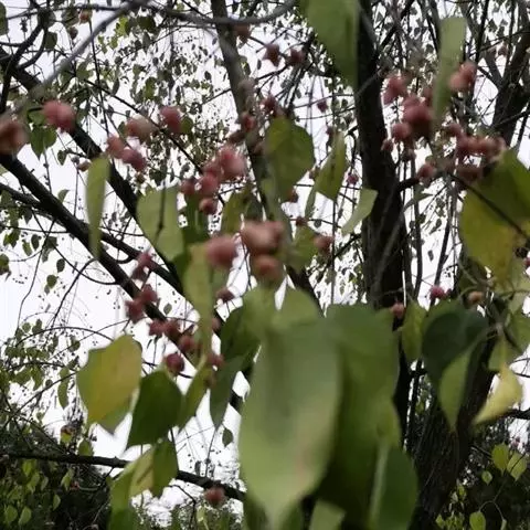 蒴果粉红色,果皮光滑,近球状,直径6-12毫米;果序梗长2-3.5厘米;小果梗长5-8毫米;种子长方椭圆状,棕褐色,假种皮鲜红色,全包种子。花期6月,果期10月。 [2-3]