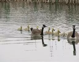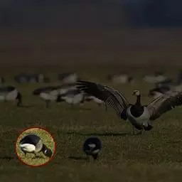 黑雁是雁形目鸭科黑雁属鸟类,又称黑鹅。头、颈、胸、嘴及脚黑褐色;虹膜褐色;背及两翼灰褐色;尾下覆羽白色;胸侧及胁部多近白色纹;颈部两侧各具一个特征性白色横纹,在颈前后断开,未能联成颈环。幼鸟颈部无白斑,而翅上多白色横纹。黑雁繁殖于北美洲、西伯利亚极地的苔原冻土带,越冬于南方沿海的草地及河口。在中国安徽也能见其身影。主要栖息在海湾、海港及河口等地,在冬季里大多出现在有耐碱植物生长的湖泊和水库周围,也出现在周围地势低洼的咸水湖和沿海地区,偶尔还出现在农田地里。性活跃,喜集群,常成群活动和栖息。主要以植物性食物为食。繁殖期在6-8月,雌鸟孵卵,雄鸟通常在距巢100米以内范围内守候警诫。雌鸟孵卵时常将头和颈朝地面平伸出去以降低高度。孵化期为22-28天。黑雁被列入中国林业局2000年8月1日发布的《国家保护的有益的或者有重要经济、科学研究价值的陆生野生动物名