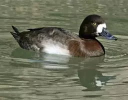 白背鸭(图3) 栖息于各种类型的内陆河流、湖泊、池塘、沼泽等地,与其他鸭类混合成群活动,善于游泳和潜水。极怕人,稍有动静立即起飞。善于游泳和潜水,往往潜入水下停留时间不长,一般3—5分钟左右。从水面起飞时,常在水面掠过相当距离,才得离开水面。一般不上陆地活动,也很少飞翔。很少鸣叫。以水生植物为食,也吃昆虫、鱼、蛙、甲壳动物、软体动物、蠕虫等。