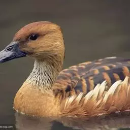 白背鸭(图2) 中型游禽,身长36~41cm,体重 450~907g,寿命15年。嘴角各有一块白斑,身上羽毛是棕黑相间的斑纹。与树鸭有密切的亲缘关系,不过有些特征却类似于硬尾鸭类。白背平时不可见,只在飞行中可见。