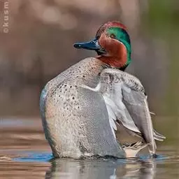 绿翅鸭是小型鸭类,体长37厘米,体重约0.5千克。嘴脚均为黑色。雄鸟头至颈部深栗色,…