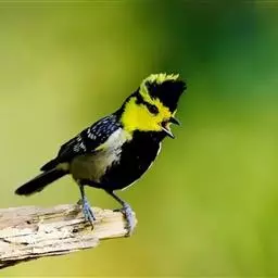 黄颊山雀是雀形目山雀科山雀属鸟类。雄鸟额、头顶和羽冠为具有光泽的黑色;额基、眼先、眉纹、脸颊和耳羽等头颈侧为鲜艳的明黄色;贯眼纹黑色;后颈亦具一黄斑;上体灰黄绿色,羽缘黑色;尾羽黑色具蓝灰色羽缘,基部白色;下体颏、喉至上胸为富有金属光泽的黑色;胸下有一黑色宽中央纵纹,一直延伸至肛周;其余下体白色;胸侧和两胁染黄色或蓝灰色;虹膜暗褐色;喙黑色;脚铅蓝灰色至铅黑色。雌鸟似雄鸟,但上体光泽较弱,胸腹部黑色纵带不明显。黄颊山雀分布于亚洲东南部地区,在中国分布于华中、华南和西南等地。栖息于中低山常绿阔叶林、针叶林和混交林中,也见于山麓疏林灌丛草坡或茶园、果园等地。常成对或小群活动,也和大山雀等其他小型鸟类混群,活跃地在乔灌木枝叶间飞翔跳跃。主食鳞翅目和鞘翅目等昆虫,兼食植物种实。繁殖期在4-6月,营巢于树洞、岩隙或墙缝中。窝卵数为3-7枚,卵灰白色且有红褐斑,雏鸟晚成。黄颊山雀被列入中国林业局200