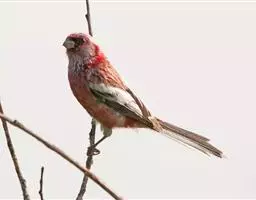 藏朱雀:全长约17-18厘米。雄鸟头部深红色具光辉,喉部暗红色具白色点斑;背部灰白色,各羽具玫瑰红…