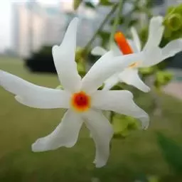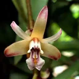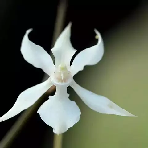 花色泽不详,直径达4厘米;萼片近长圆形,长2.5—2.8厘米,宽7—9毫米,先端渐尖或近短尾状,具5脉;花瓣线形,长2.2—2.4厘米,宽2.5—3毫米;唇瓣卵形,长2.5—2.8厘米,3裂,基部凹陷 ;