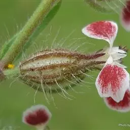 斑唇贝母兰,根状茎稍粗壮,假鳞茎在根状茎上较密集,叶长圆状倒披针形,革质,花葶连同幼嫩的假鳞茎和叶从靠近老假鳞茎基部的根状茎上发出,长12—14厘米,初时大部分为鞘所包,仅伸出花序,总状花序长4––6厘米,通常具2朵花,花色泽不详,直径达4厘米,花期6月,产云南南部(思茅、普文)。生于岩石上,海拔1300米。越南、老挝、缅甸、泰国 ·也有分布。
