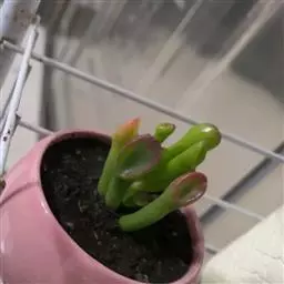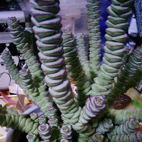 红稚儿Crassula pubescens subsp. radicans Toelken为景天科、青锁龙属多肉植物。植株丛生,有细小的分枝,茎肉质,时间养久了茎会逐渐半木质化,红稚儿叶片有点薄,叶片颜色绿。颜色反差巨大,平时为绿色,日照充足的春秋季节,变为火红色。野外分布于南非东开普省布什维德谷。喜温暖干燥和阳光充足的环境,怕低温和霜雪,耐半阴。叶形叶色较美,有一定的观赏价值;盆栽可放置于电视、电脑旁,可吸收辐射,亦可栽植于室内以吸收甲醛等物质,净化空气。