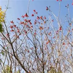 刺桐,是豆科刺桐属乔木植物。树皮灰褐色;分枝有圆锥形黑色皮刺;叶柄无毛,无刺;花密集,…