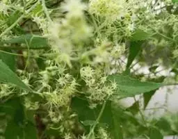 花雌雄异株。雌、雄花序均为疏散的圆锥状,极稀花单生,花序轴丝状,长4-10厘米,花梗纤细,长1.5-3.5厘米;花黄绿色;花萼与花冠相似,裂片卵状披针形,长约2.5毫米,顶端具长丝状尾;雄蕊5,离生;花丝顶端不膨大,长0.3-0.5毫米,花药长0.5毫米,药隔在花药背面不伸出于花药。子房近球形,疏散生不显著的疣状凸起,3室,每室2胚珠,花柱3,柱头2裂。果实圆柱状,长1.5-3厘米,径1-1.2厘米,成熟后由顶端盖裂,果盖圆锥形,具6枚种子。种子卵状菱形,暗褐色,表面有雕纹状凸起,边缘有不规则的齿,长8-10毫米,宽约5毫米,厚1.5毫米,顶端有膜质的翅,翅长约8-10毫米。花期6-8月,果期8-9月。