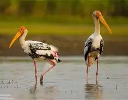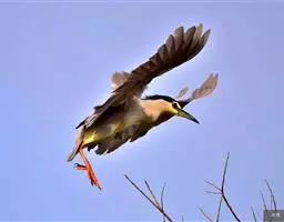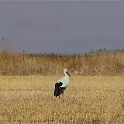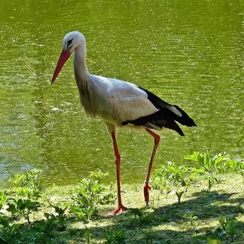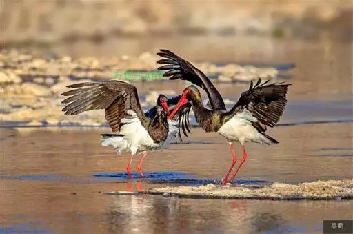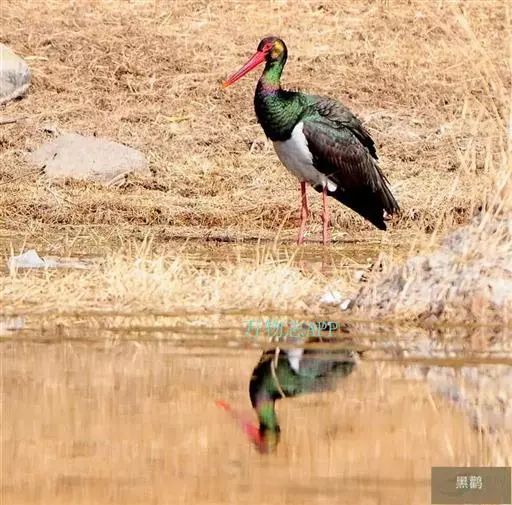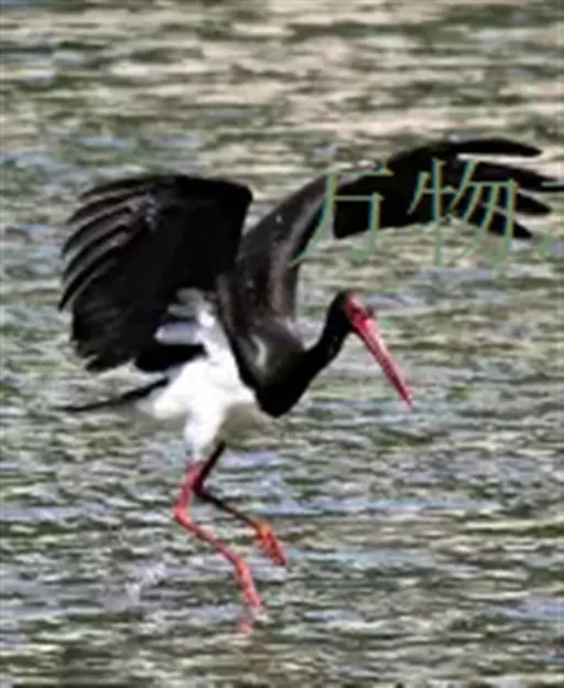 黑鹳(学名:Ciconia nigra):是一种体态优美,体色鲜明,活动敏捷,性情机警的大型涉禽。成鸟的体长为1-1.2米,体重2-3千克;嘴长而粗壮,头、颈、脚均甚长,嘴和脚红色。身上的羽毛除胸腹部为纯白色外,其余都是黑色,在不同角度的光线下,可以映出变幻多种颜色。在高树或岩石上筑大型的巢,飞时头颈伸直。