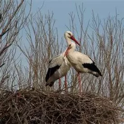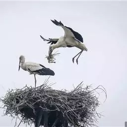 白鹳,也叫 “老鹳”。它体形硕大,长约1.2米,通身羽毛为白色,唯两翅边缘羽毛为黑色。白鹳嘴、腿都很长,亚州白鹳腿为暗红色,而嘴为黑色,分东、西亚种,生活习性与黑鹳基本相似。夏季,我国白鹳的繁殖地有两处:东亚种繁殖地在东北北部山林地区,西亚种繁殖地在新疆西部。深秋或初冬,东北的白鹳南飞长江中、下游或福建、广东和台湾等温暖地区越冬,新疆的白鹳则迁徙到印度、尼泊尔等国的温暖地区越冬。