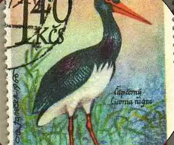在这2枚邮票的图案设计中,作者刻意追求一种对称美,收到了良好的艺术效果。从鹳种看,一只黑鹳,一只白鹳,刚好黑、白对称;在衬底的着色上,一枚偏棕黄,一枚偏灰绿,形成明暗、冷暖对比;在构图上,黑鹳双腿着地,悠然自得,慢踱方步,羽毛整洁,而白鹳单腿伫立,垂首略作小憩,羽毛未及梳理,仿佛刚从湖中嬉水而出,两鹳动、静姿态对称;若把2枚邮票排列一起,则一鹳朝东,一鹳朝西,相互呼应。在国名、票名、面值等文字的布局上,2枚邮票也是相互对应、平稳得体。