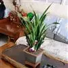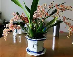 上盆(或翻盆)时间一般在春季3-4月或秋季10-11月。花盆以口小、盆深、底孔大的为佳。新从山上挖来的野生苗需理植于瓦盆(泥盆)中,这样兰花泥易干,通气性好.容易发根;2-3年后方可换人紫砂盆或瓷盆。兰花种植(在盆中)的方法与一般花卉不同,尤其是名种兰花,翻种移盆必须洗根。方法足将根浸入清水中,用旧牙刷或毛笔轻轻洗刷,切勿用力过大伤根;用剪刀将残叶、黄叶、断裂根、发黑腐烂根剪去,注意勿伤幼芽。然后将处理好的植株放在阴凉通风处晾干,待根部发白并显细小皱纹柔软时,再植入盆中。