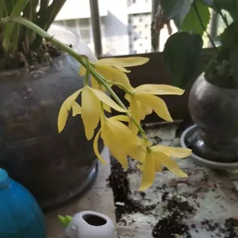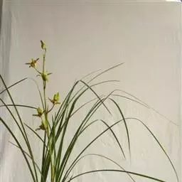 建兰素花,绿白色,清香,一枝开花5至12朵。叶色钢青,细而挺拔,有铮铮铁骨之相,所以叫铁骨素。在日…