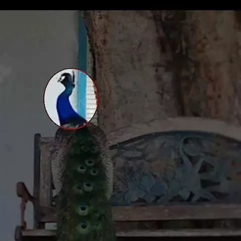 雌鸟头和后颈灰褐色,无冠羽,眼周白色,其后一条白纹与眼周白圈相连,形成特有的白色眉纹。上体灰褐色,两翅和雄鸟相似,但无金属光泽和帆状直立羽。颏、喉白色。胸、胸侧和两胁暗棕褐色,杂有淡色斑点。腹和尾下覆羽白色。