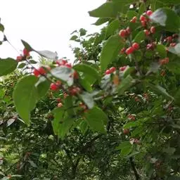 蓝果忍冬 蓝果忍冬苗木可在秋季和春季定植。但春季栽植成活率低一些,而且长势不如秋季栽植的强健,这主要是由于蓝果忍冬进入营养生长期早的生物学特性决定的。蓝果忍冬一般在4月初开始萌芽,此时土壤还没解冻,无法栽植,而到4月末时,其枝条已经生长,甚至开花,所以此时定植势必影响成活率和长势。栽植一般选用1-2年生苗木,高30-50厘米,定植坑不必挖得太大,直径和深度各40厘米即可。每坑可施腐熟厩肥5-10千克。定植行株距要根据地块肥力和品种特性来定,长势缓慢、直立的品种可采用2米×1米,长势快、开张的可采用2.5米×1.5米。定植后要保持土壤湿润状态,萌芽展叶后遇土壤干旱时应及时灌水,确保成活。