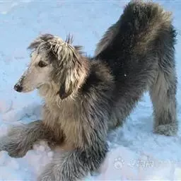 阿富汗猎犬全身披丝绢状的长毛,毛色鲜艳,呈多种颜色,背中线附近毛短,…