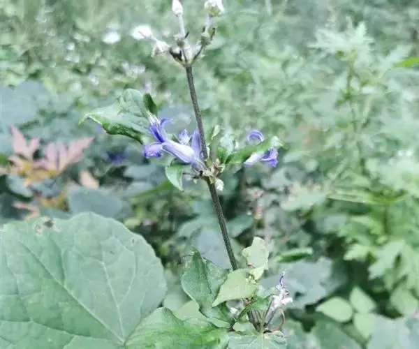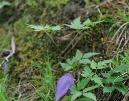 该种为直立粗壮草本;三出复叶;聚伞花序,花杂性,花萼基部成管状,上部反卷,蓝紫色,较易于与铁线莲属其它种相区别。