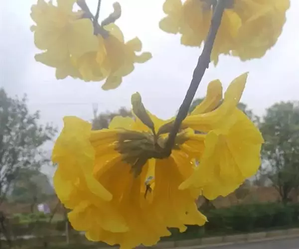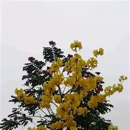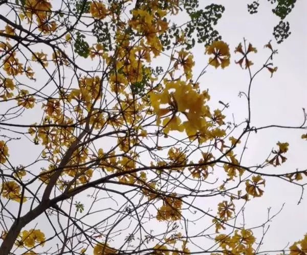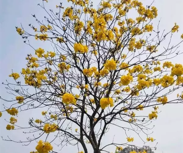 黄钟木【学名:Tabebuia chrysantha (Jacq.) Nichols.】,紫葳科、黄钟木属 落叶小乔木,原产中南美洲。常作为优良的行道树,也可种植在庭院、校园、住宅区等地,花色金黄明艳,适合公园、绿地等路边、水岸边栽培观赏。
