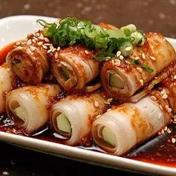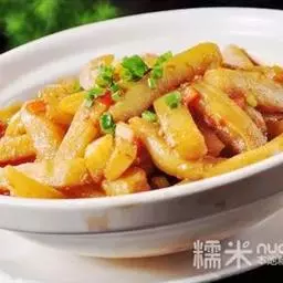 白红相间,形如菊花,肉质软嫩而鲜;粉条又酥又香,别有风味。
