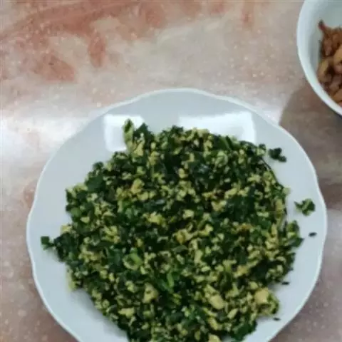 2.芥蓝菜折小段,洗净,用开水氽一下,捞出后立刻冲凉备用