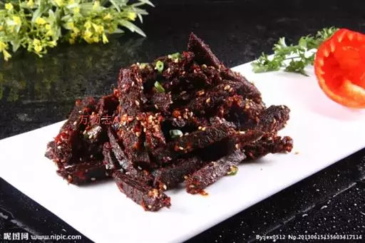 3.通常不要选择湿度较大的牛肉干,湿度越大越容易滋生细菌。